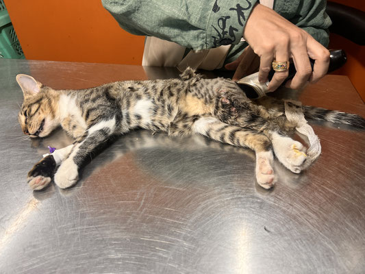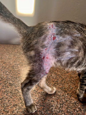 Auch Notfälle gehören leider dazu: Diesen Monat mussten wir einer jungen Katze mit offenem Bruch – vermutlich nach einem Autounfall – das Bein amputieren. Nur eine Woche zuvor verlor ein Kater sein Bein, nachdem er von einem Hund schwer verletzt wurde.